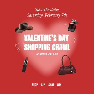 Valentine’s Day Shopping Crawl at West Village Mark your calendar and grab your girls — it’s time to shop, sip, snap, and win. Saturday, Feb 7 | All Day Visit participating stores, collect punches, and enter to win a luxury gift basket filled with gifts + gift cards. Bubble Bus | 2–7 PM First 50 Continue reading